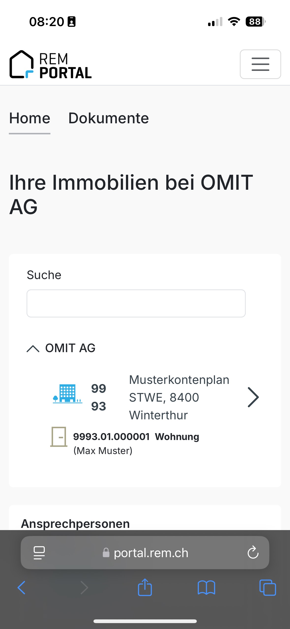 - Öffnen Sie das Eigentümerportal mit folgendem Link: https://portal.rem.ch.