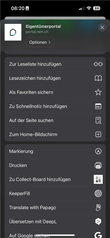 - Scrollen Sie nach unten und wählen Sie «Zum Home-Bildschirm»