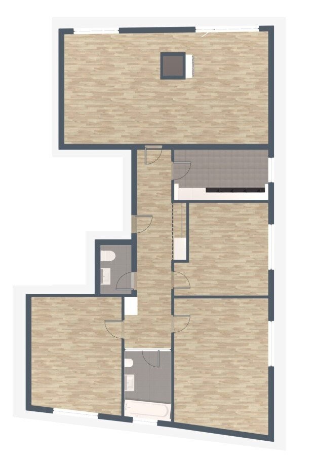 - Riemenparkettboden in den Wohn- und Schlafräumen
