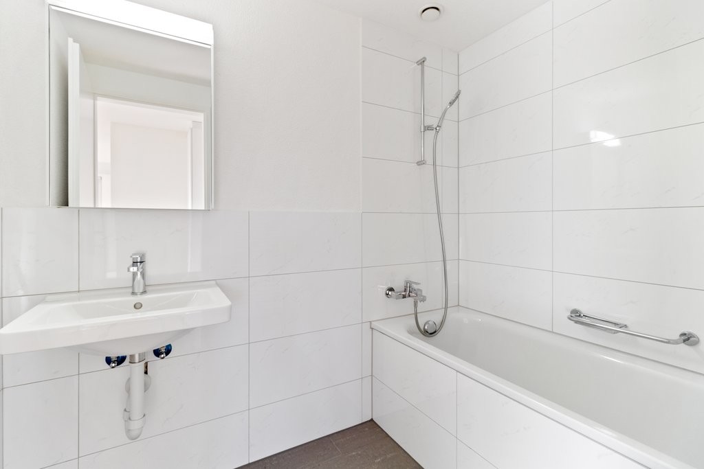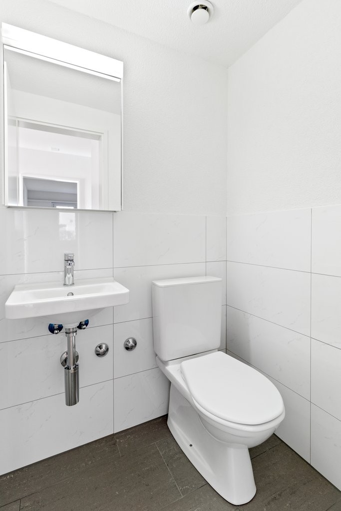 - 1 Nasszelle mit Lavabo und Badewanne, 2 Nasszelle mit Toilette und Lavabo